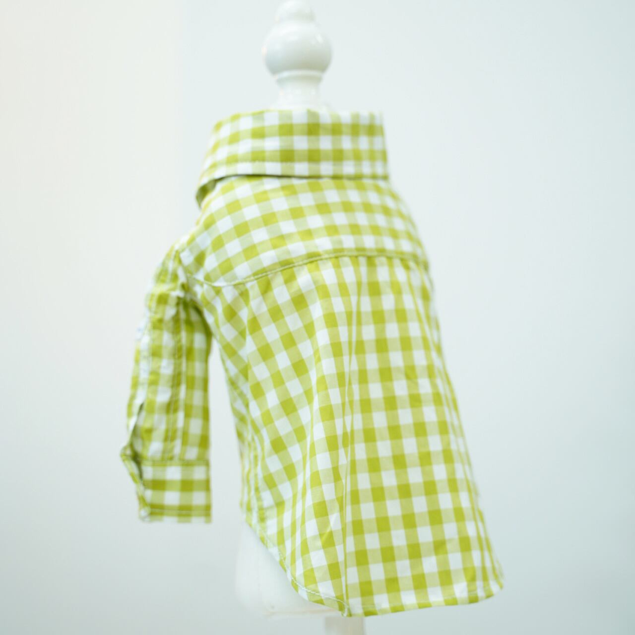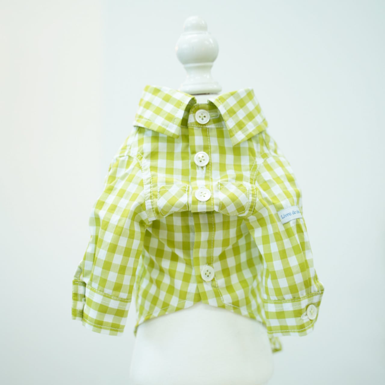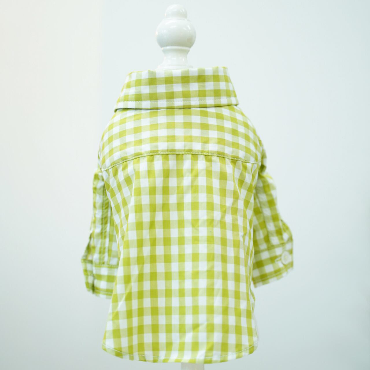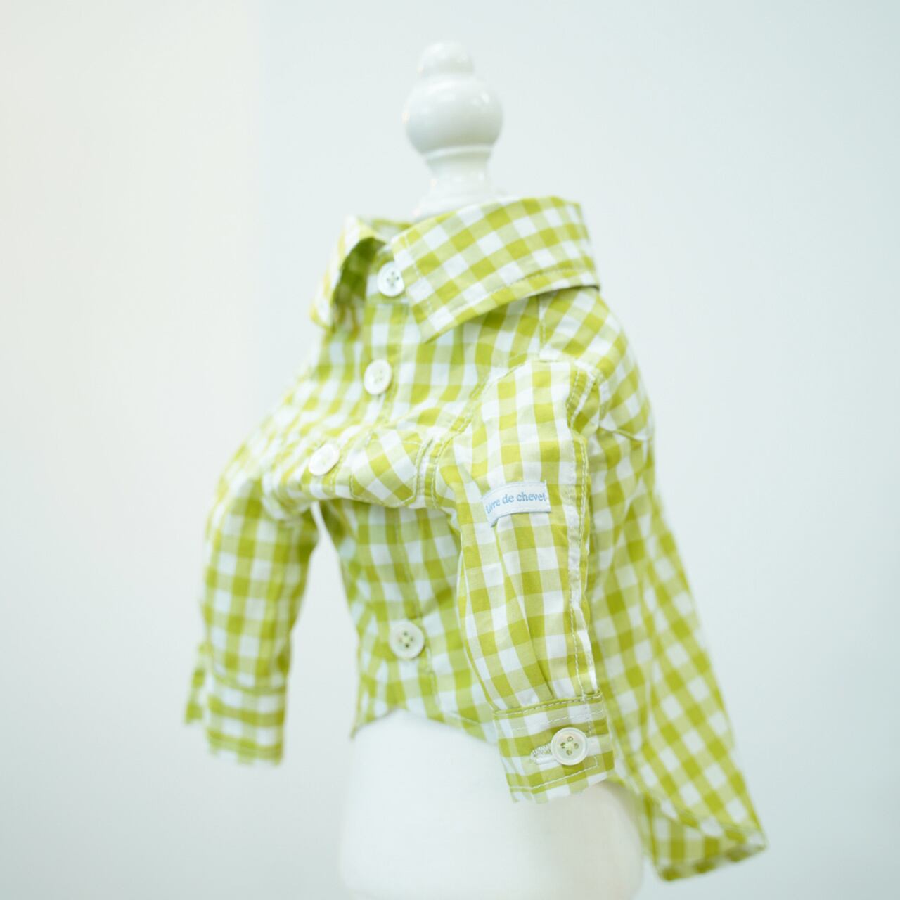 ピスタチオギンガムチェックシャツ リーブル定番のギンガムチェックシリーズです! 今回はピスタチオグリーン×ホワイトのギンガムチェックとなります。 落ち着いた中にポップさのある黄緑のギンガムチェックです シャツ・ワンピースともに、打ち込みの良い上質なコットンを使用しました、 ボタンは貝ボタンで、ボタン糸はギンガムの色味を拾った黄緑色で統一感を出しています。 シャツは長袖の定番の仕様で爽やかに着られます。 シャツの左腕にネームが付きます。 シャツのお袖にはホワイトのネームタグが付いております。 0-3size展開 1.5size有